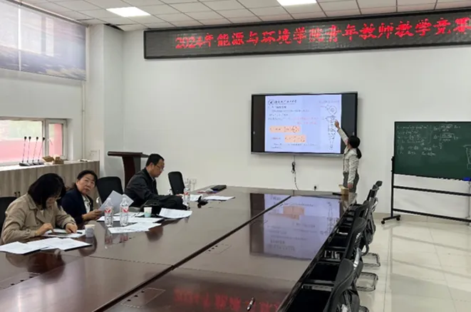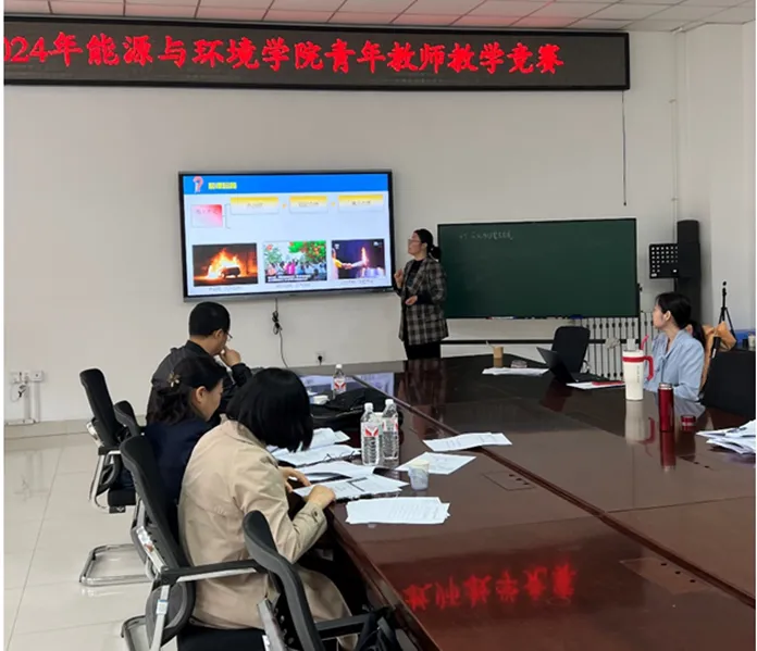 为贯彻落实学校第三次党代会精神,进一步加强我院青年教师队伍建设,不断提高青年教师教学能力和水平,提升教学质量,扎实推进教育教学改革,2024年4月29日,能源与环境学院在重点实验室B座318举办了青年教师教学竞赛决赛。