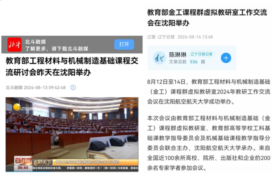 中国新闻网、辽宁电视台、辽宁日报等媒体对会议给予了充分报道。在媒体采访中,孙康宁教授表示,金工课程群虚拟教研室充分发挥虚拟教研室跨空间、跨地域、数字化、高水平教师多的优势,实现了教育部提出的承担大项目、出大成果的建设要求。李润东校长强调,这次会议促进了全国高校金工课程群的交流,为把握高等教育发展趋势、促进教育教学高质量发展,搭建了有效平台。