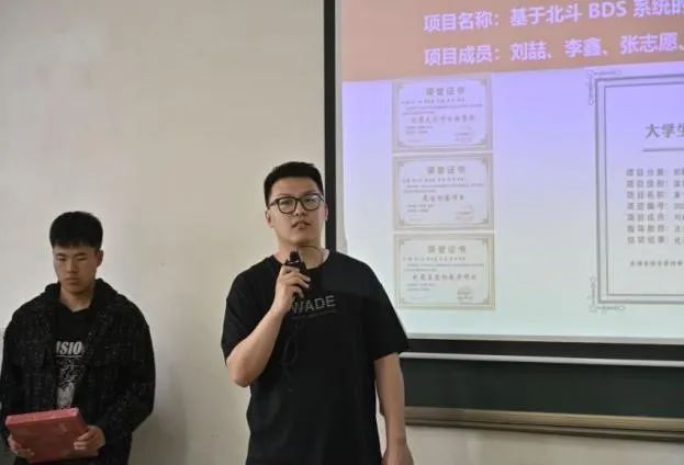 2020年-2022年,俱乐部的师生在桥梁结构设计赛项和大学生创新创业项目中取得了很好的成绩。桥梁结构设计赛项是一个全新的赛项,指导老师和同学们从零开始,一起摸爬滚打,在2022年获得多个奖项和殊荣;大学生创新创业项目中,刘喆、李鑫等同学的“基于北斗BDS系统的森林无人机防火巡查系统”斩获包括国家级在内的多个创新创业奖项。郑耀辉副主任、魏利峰副院长、杨静老师为获奖者颁奖。