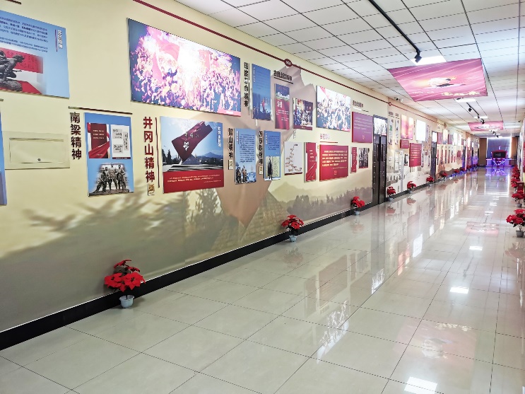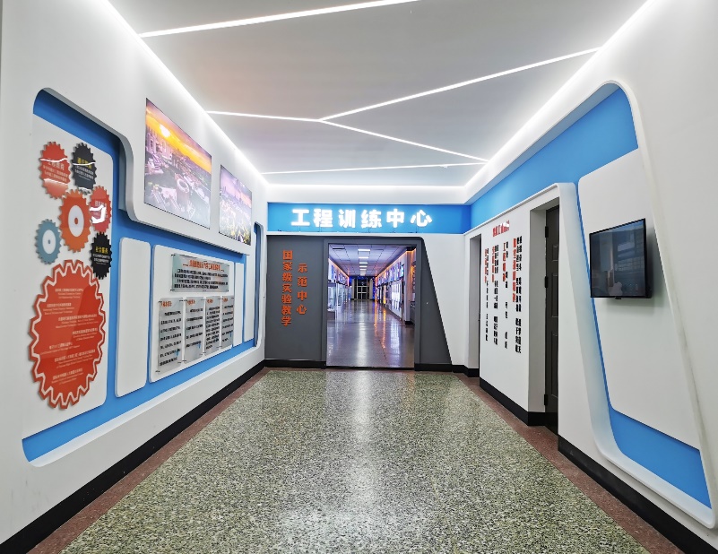 “赓续红色血脉、厚植蓝色情怀”,工程训练中心2021年起开始建设红蓝文化实践教育基地。基地包括主题教育实践基地展馆、中国共产党人精神谱系红色展廊、航空航天知识科普和劳模工匠精神培育蓝色展廊三个部分。展区内设置了VR互动体验区、电子阅读区、创新活动室、小型座谈交流区等功能区域并配备了图书、电子资源阅读一体机及VR体验设备等,借助声、光、电、虚实结合的手段和图文展示、音视频等形式的资源展示了中国共产党人的伟大精神、航空航天科学发展等方面内容,搭建了校内重要的思政育人平台。