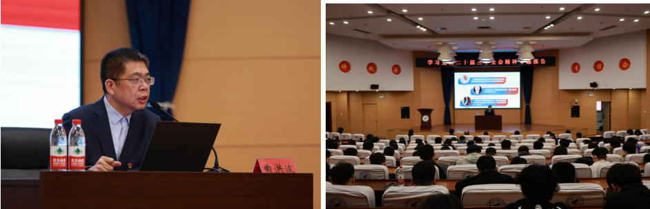 曲洪波教授从梳理党的历届三中全会着手,围绕深刻认识党的二十届三中全会的重大意义,准确把握进一步全面深化改革的指导思想、总体目标和重大原则,准确把握《中共中央关于进一步全面深化改革、推进中国式现代化的决定》提出的进一步全面深化改革的重大举措,以及抓好全会精神贯彻落实四个方面,进行了详细阐释和生动解读。报告主题鲜明、站位高远、内容丰富、重点突出,具有很强的政治性、理论性、针对性、指导性,对广大师生准确理解全会精神,坚定改革信心、汇聚改革合力,具有重要的指导意义和参考价值。