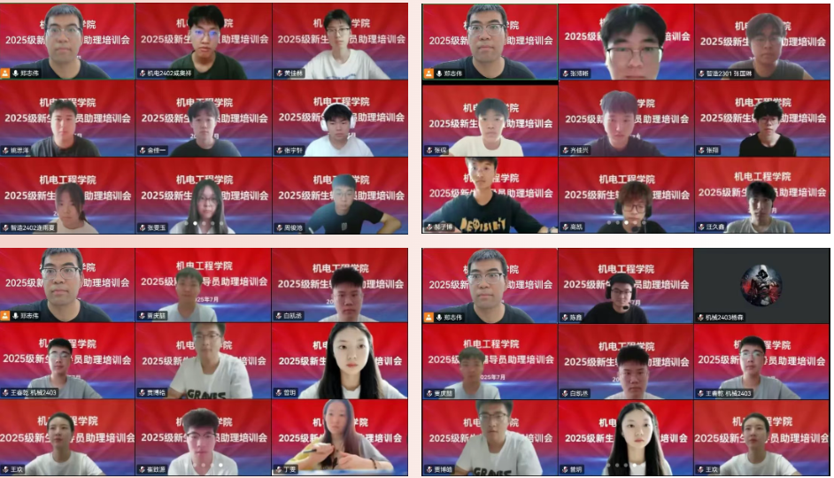 为进一步提升新生助导的综合素养与工作效能,充分发挥其在辅导员与学生间的桥梁纽带作用,7月27日,机电工程学院利用腾讯会议平台开展2025级新生辅导员助理专题培训。学院党委副书记王欢、辅导员郑志伟及26名辅导员助理参加本次培训。