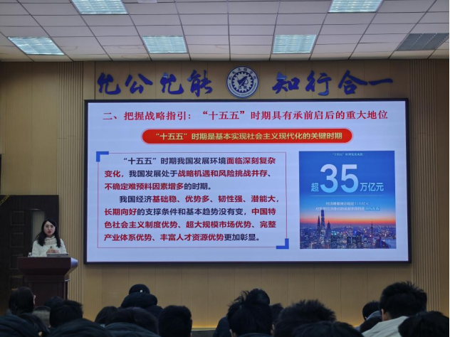 宋丽娜以“回望五年答卷”“把握战略指引”“擘画崭新蓝图”为核心脉络展开系统宣讲。她全面梳理了2021-2025年“十四五”时期我国经济社会发展取得的历史性成就与标志性突破,紧扣党的二十届四中全会精神核心要义,深入阐释“十五五”时期的重大历史定位与时代使命,明确指出该时期是基本实现社会主义现代化的关键夯实期、全面发力期,在社会主义现代化建设进程中具有承前启后、继往开来的重要战略地位。